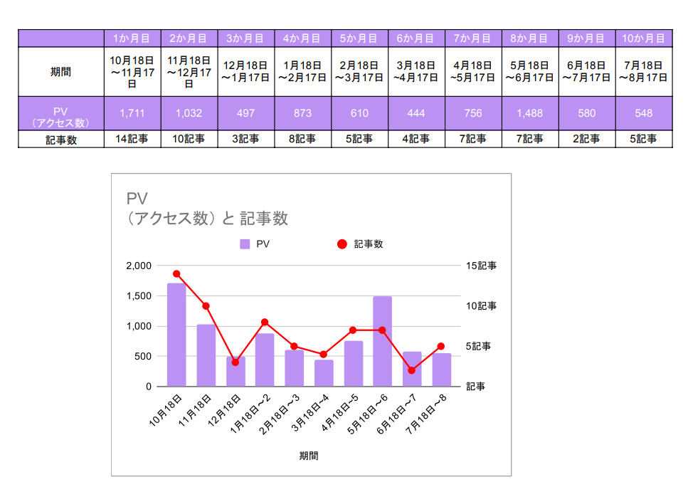 記事数は、10か月目は、5記事しかアップしました。