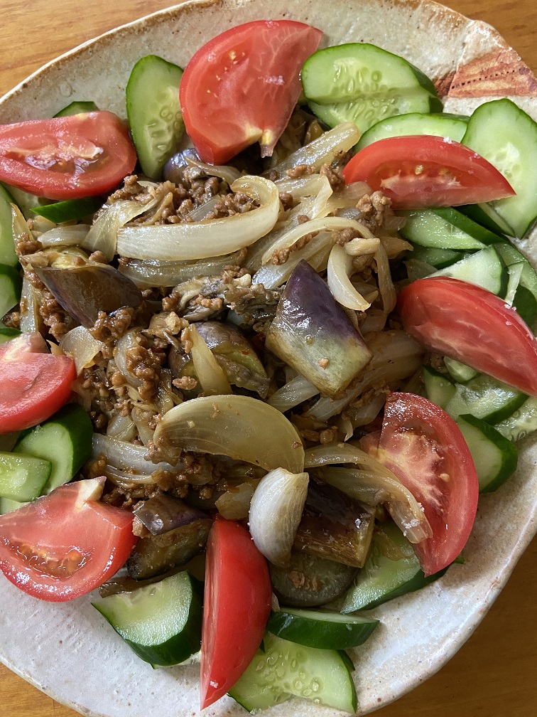 ちょうど茄子があったので、麻婆茄子風にしてみました!