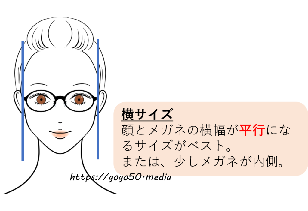 また、顔幅と同じか少し顔幅よりも小さいくらいになるレンズ幅のものを選ぶとよいですよ。