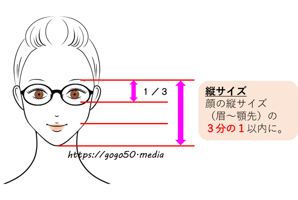 - ・縦幅は、顔の長さ(眉からあごまでの長さ)の3分の1以内に