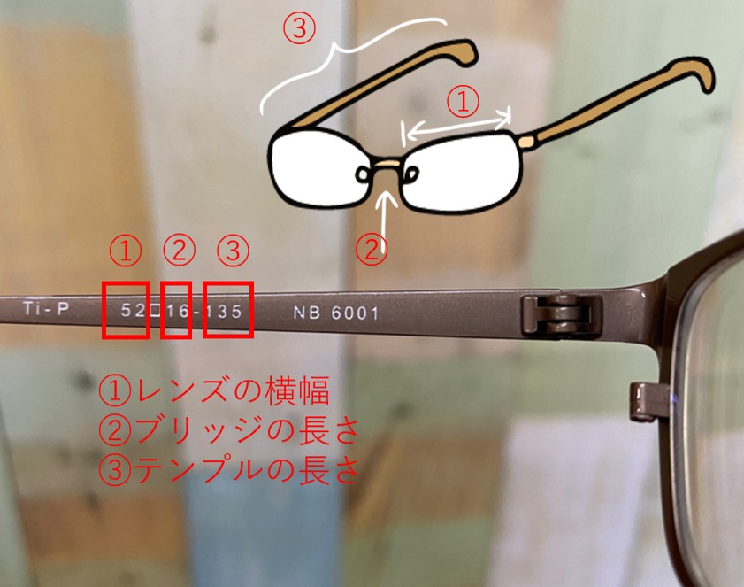 テンプル(めがねのツル)に必ず書いてある数字を見てくださいね!結構ココ重要です!
