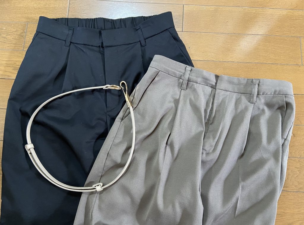 どちらかといえば、下半身はLサイズにすることもあるのですが、お腹周りにタックのあるテーパードパンツなので、Mサイズでもゆとりがありました。