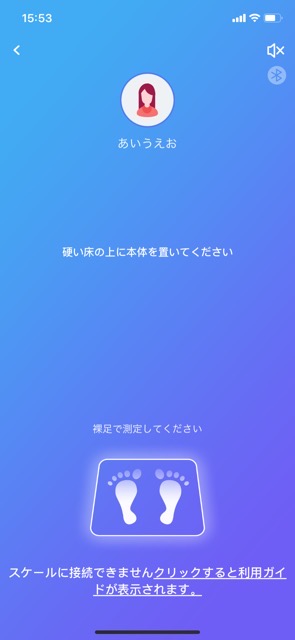 Bluetoothをオンにしてください、とメッセージが出て、オンなら体重計に乗ればすぐに計測して、データ化してくれます。