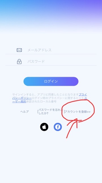 アカウントを登録というところをタップします。(意外と見つけにくかった(^-^;)下のほうにありますよ。