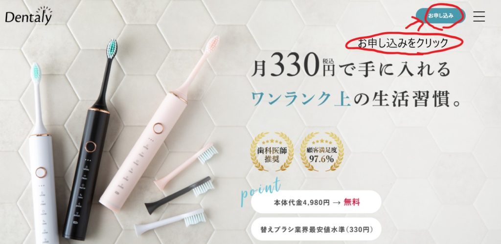 Dentaly(デンタリー)は、月々330円(税込)で使える、電動歯ブラシのサブスクリプションサービス。