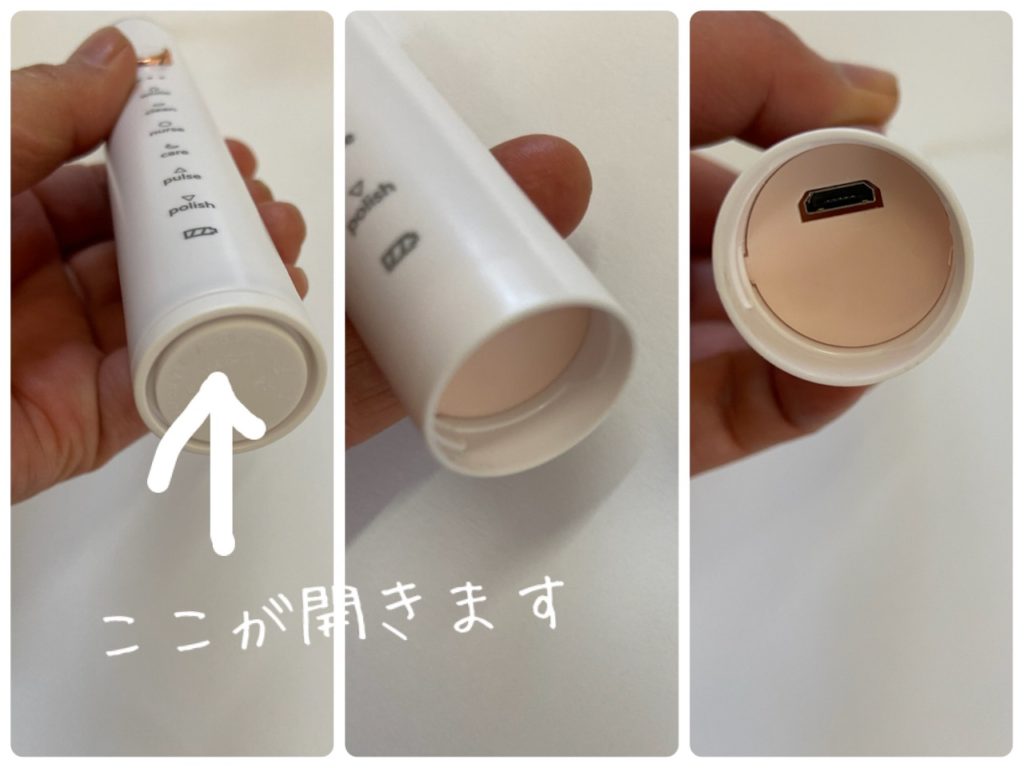 充電は、底のふたをパコっと開けると、USBの差込口が出てきます。