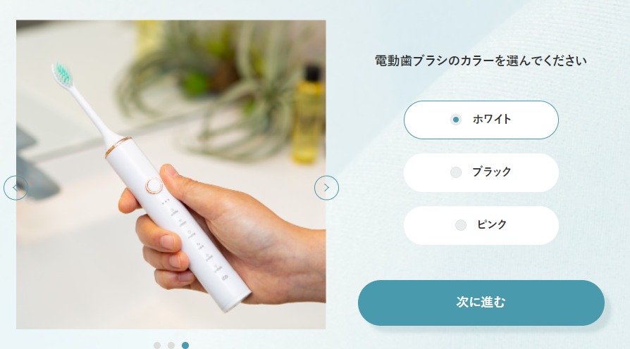 電動歯ブラシのカラーを選択します。(ホワイト・ブラック・ピンク)があります。