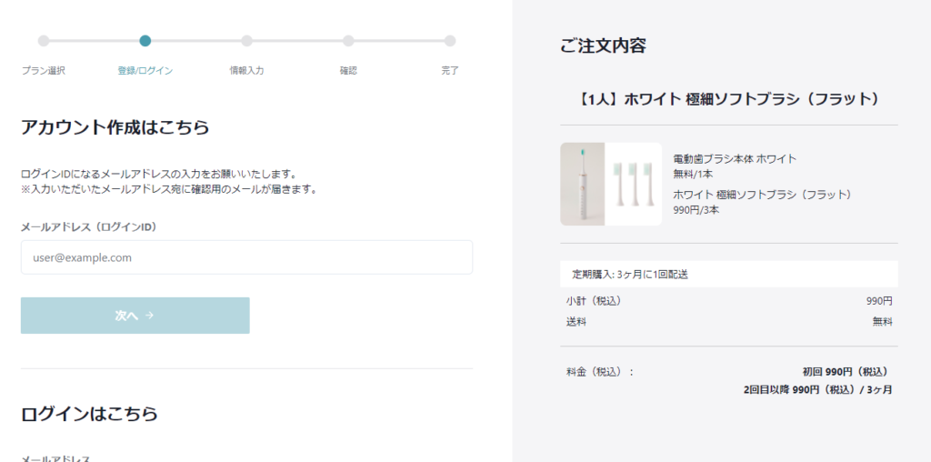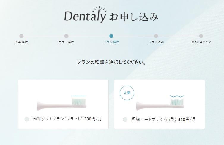 歯ブラシの種類を選びます。(価格が違います。3か月ごとの配送の時に変更も可能です。)