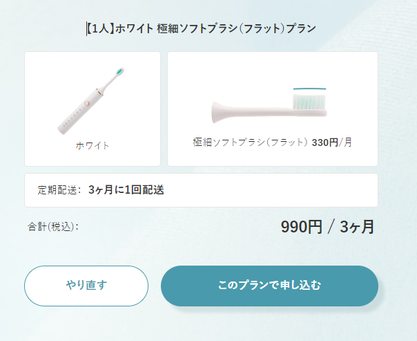 でも、ずっと保証がついてくる電動歯ブラシが月額330円(税込み)で使えるというのは、なかなかいいサービスだと思います。